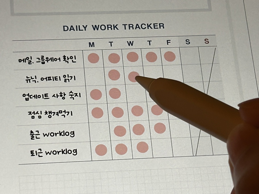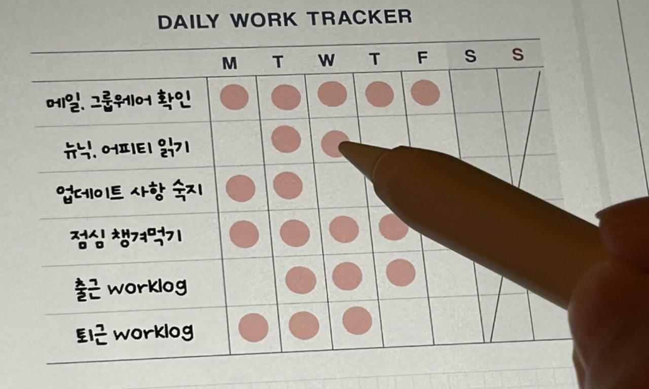 데일리 업무 트래커에 출퇴근 워크로그 체크하기