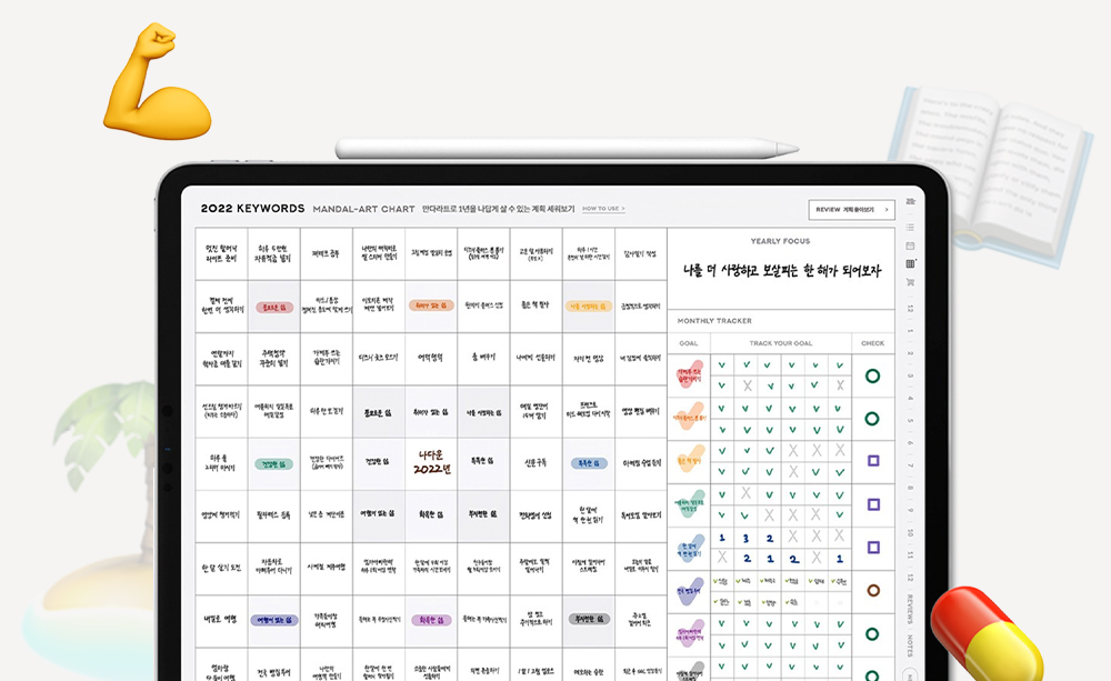2022년에는 2021년의 부족했던 부분을 되돌아보고 낼나 만다라트로 1년을 나답게 채워갈 계획도 세워 이루고 싶은 것들을 이뤄나갈 거예요!