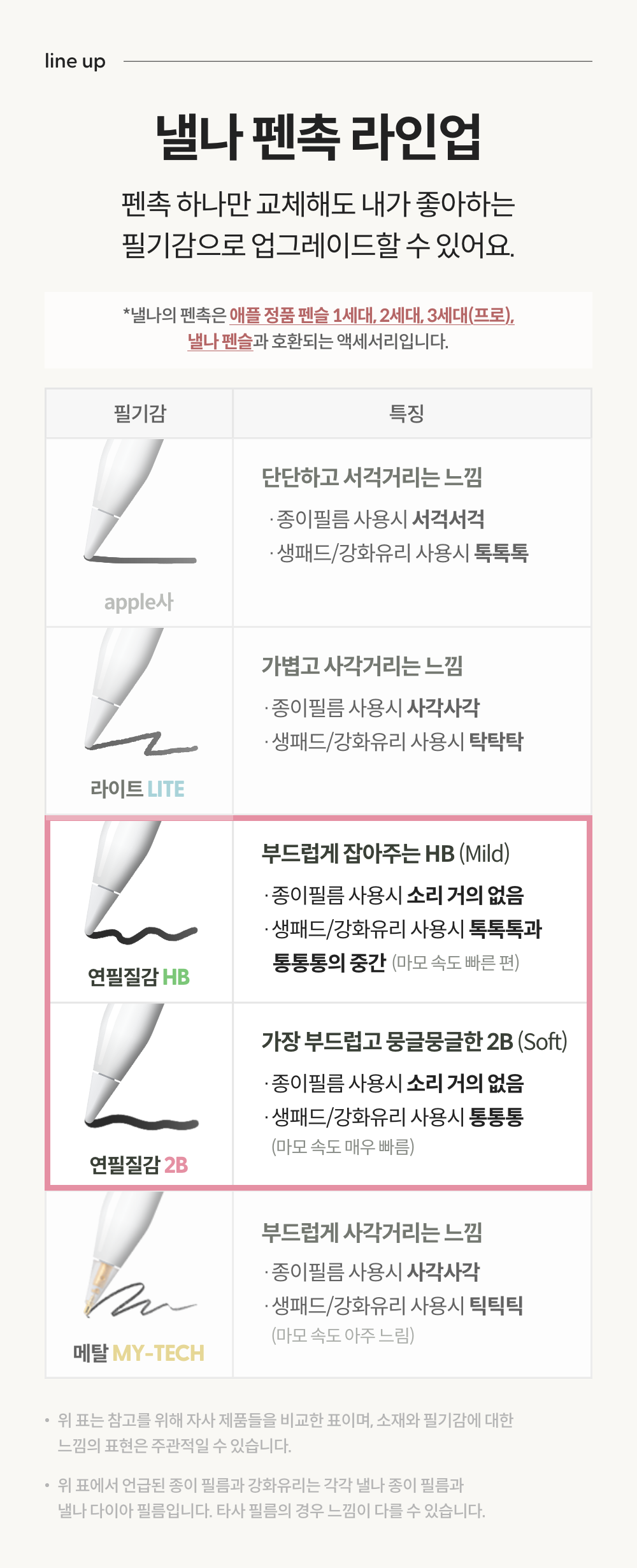 * 안정감있게 잡아주는 HB 펜촉3개* 몽글몽글한 질감의 좀더 부드러운 2B 펜촉 3개