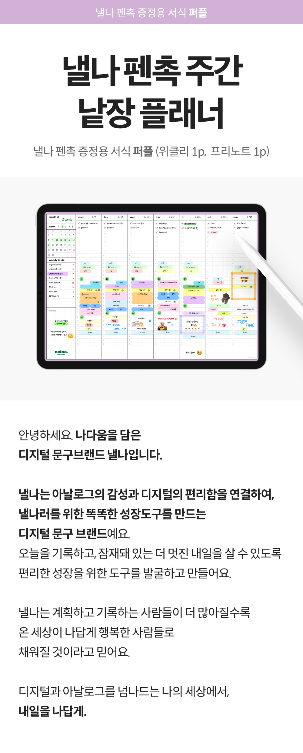 - 본 상품은 낼나 펜촉을 구매하신 분들께 드리는 증정용 서식입니다.- 먼슬리 1p + 프리노트 1p로 구성되어 있습니다.- 구매하기 버튼을 누른 후 결제페이지에서 낼나 펜촉 패키지 내의 쿠폰코드를 입력하시면 무료로 다운로드하실 수 있습니다.