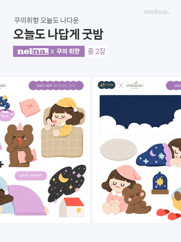 쿠의취향과 낼나가 만났습니다! 오늘도 굿나잇, 좋은 꿈만 꾸길 기도해요! 귀여운 캐릭터스티커로 굿밤보내세요!